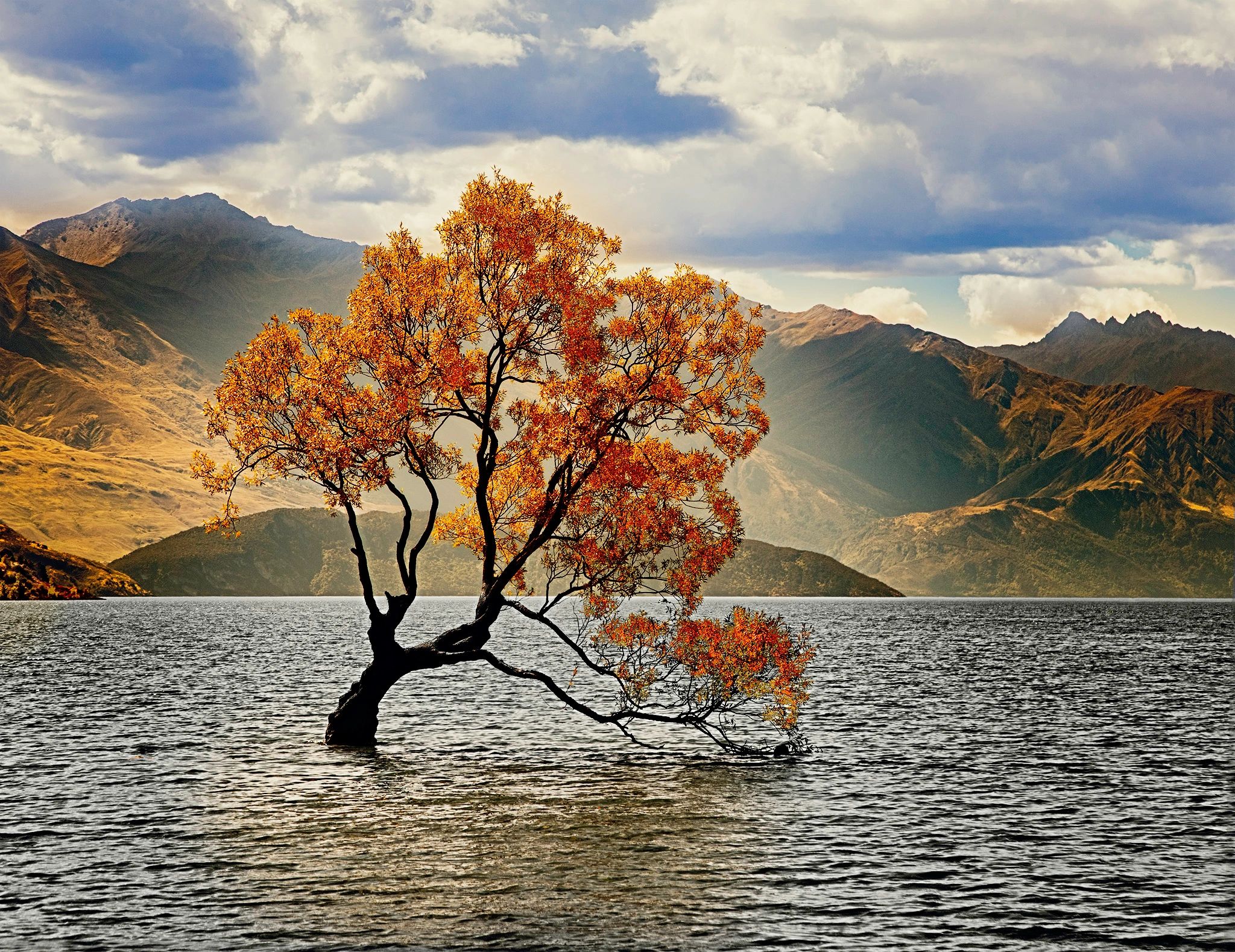 This may be the most photographed tree on the planet. Located in Wanaka, New Zealand, it was high on my list of photo-gets. The tree was so well known that when we were at a coffee shop in Wanaka, I asked the server "How can I find the tree“? "The tree" is all I said. Without hesitation she said "Go 5 miles down this road and you’ll see it on the right." It is a strange sight, a fully formed tree growing out of a lake. In this image I changed the color of the leaves to complement the scenery behind it and added a fairly moody sky. This image is one of my favorites.