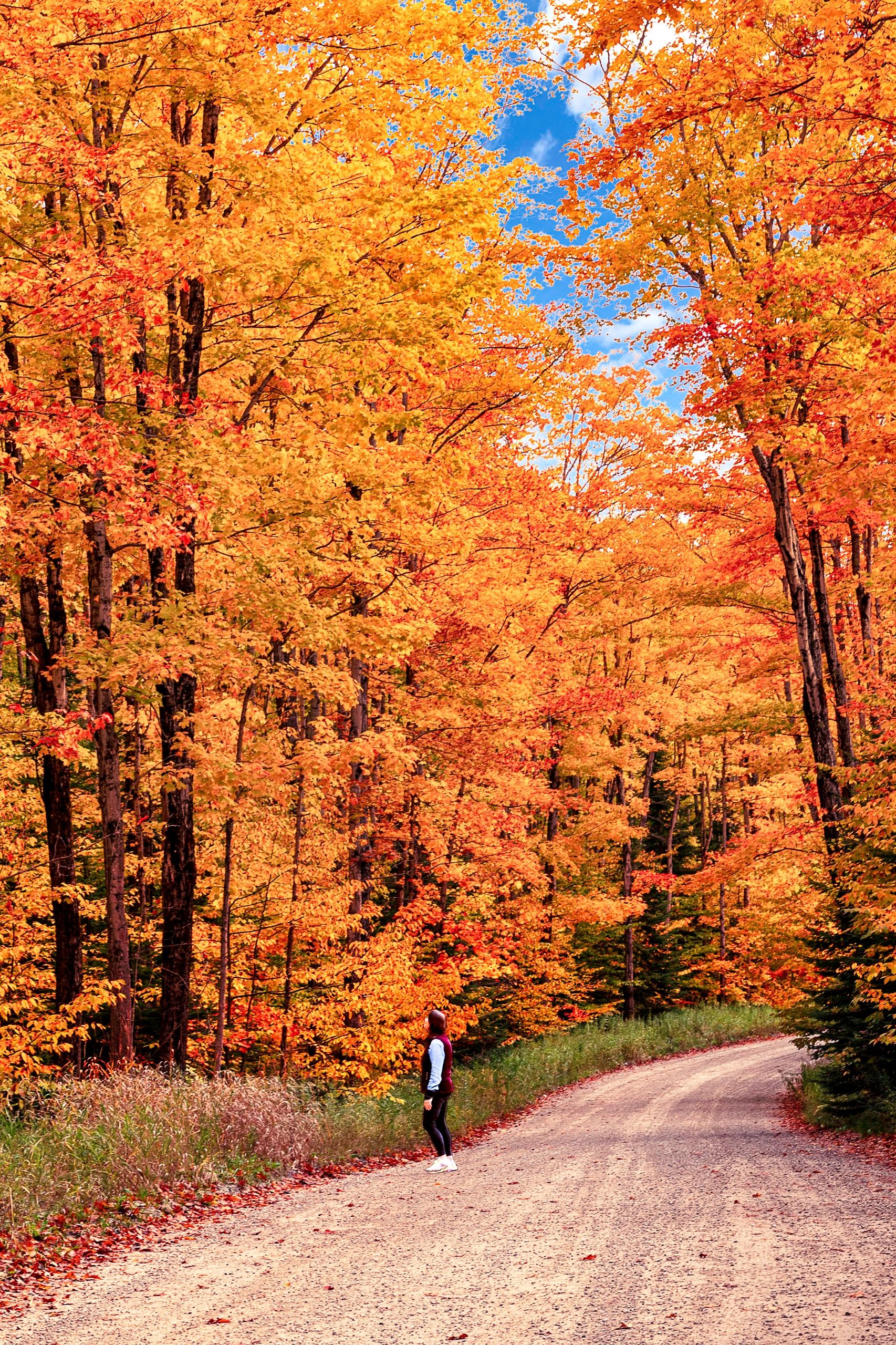 Reed and I went to Munising, Michigan last fall. Munising is in the upper Peninsula on the southern shore of Lake Superior. We lucked out with blue sky and spectacular colors. Few sights are prettier than the tall Northern Michigan forests on a sunny autumn day. The trees are so tall, I asked Reed to stand in the picture to give perspective to the grandeur of the scene.