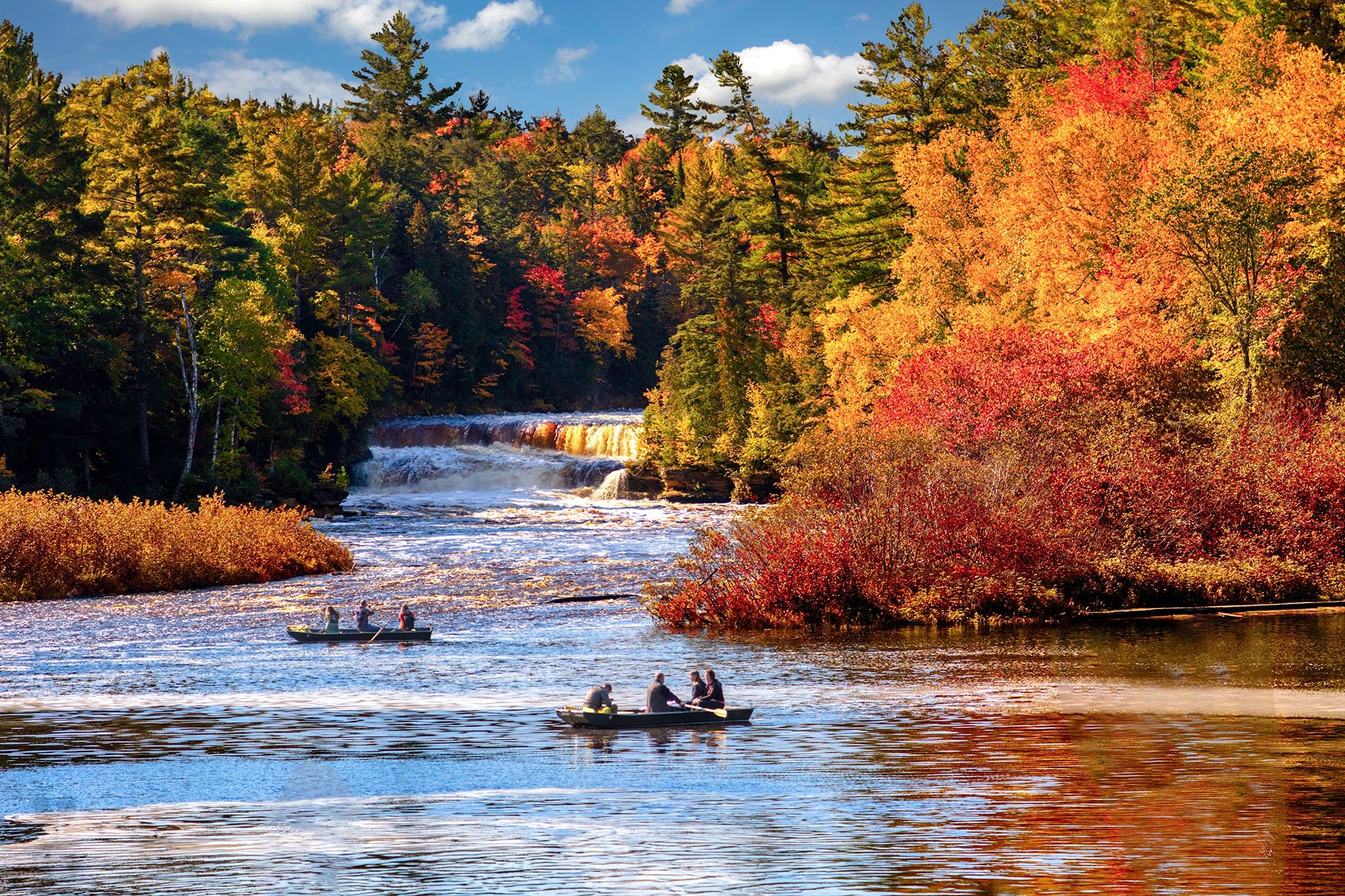 Last October we looked forward to capturing the autumn splendor in Michigan’s upper Peninsula. The weather was not cooperating and time was slipping by. Then, we found a window of 2 1/2 days of blue sky and sunshine just as the autumn leaves were in for flower. This image is was taken at the Tecquamin Falls, near Munising, Michigan. A picture of serenity.